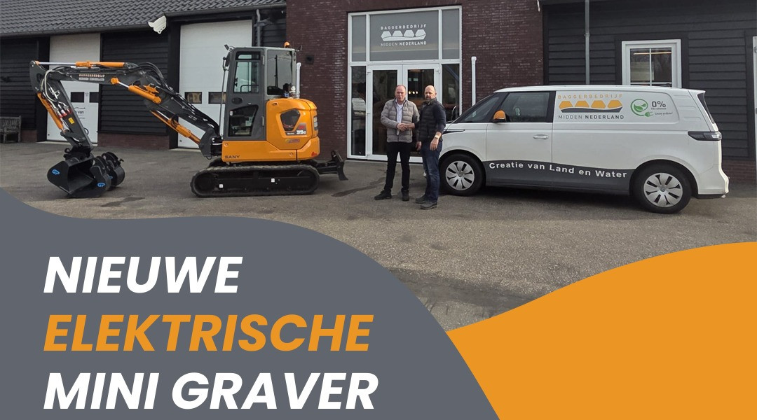 Onze nieuwe elektrische mini graver staat klaar om samen met ons te werken aan een duurzame toekomst. Een mooie stap richting emissieloos werken.